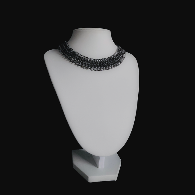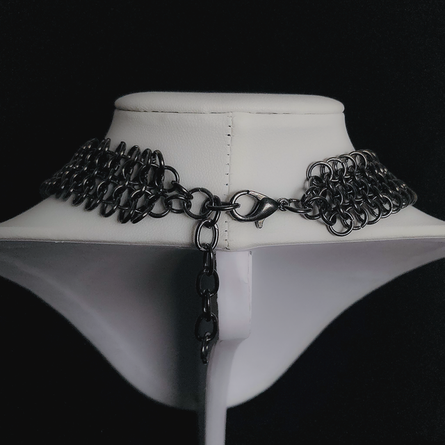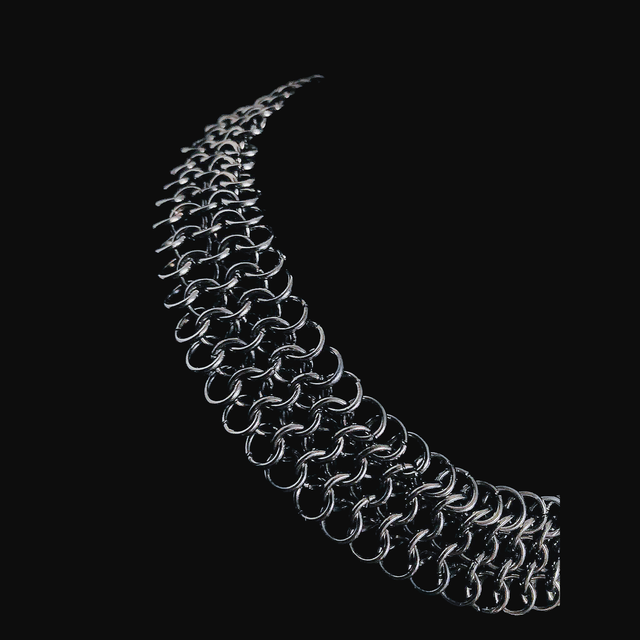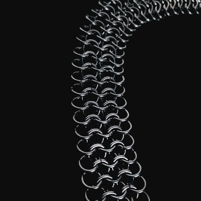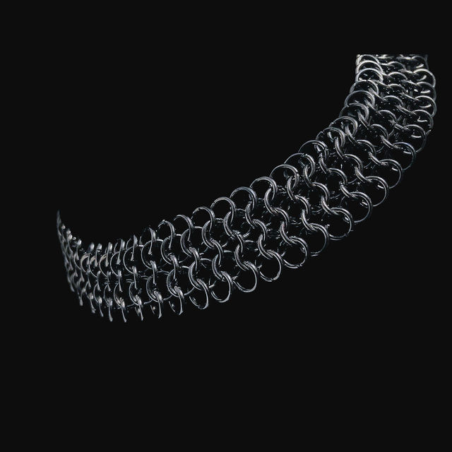Antracytowy Choker w stylu European 4 in 1 chainmail to wyjątkowy naszyjnik, który łączy w sobie gotycki charakter z nowoczesnym, wyrazistym stylem. Jego unikalny splot European 4 in 1 to klasyczna technika chainmail, w której każda pojedyncza obrączka jest połączona z czterema innymi, tworząc złożoną, ale harmonijną strukturę. Taki splot nadaje naszyjnikowi wyrazistą teksturę oraz niezwykłą trwałość, co sprawia, że jest to biżuteria, która przyciąga wzrok i dodaje wyjątkowego charakteru każdej stylizacji.
