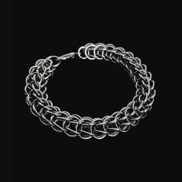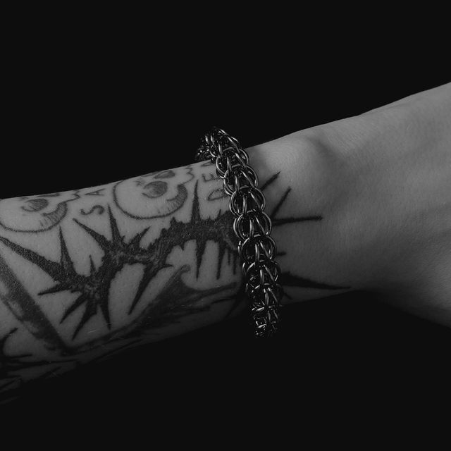 Masywna bransoletka w efektownym splocie Full Persian, wykonana z ciemnego metalu, solidna i trwała, a jednocześnie elastyczna. Dopasowuje się do nadgarstka i dobrze leży przez cały dzień. Każde ogniwo zostało starannie połączone ręcznie, co nadaje bransoletce unikatowy charakter i wysoką jakość wykonania.