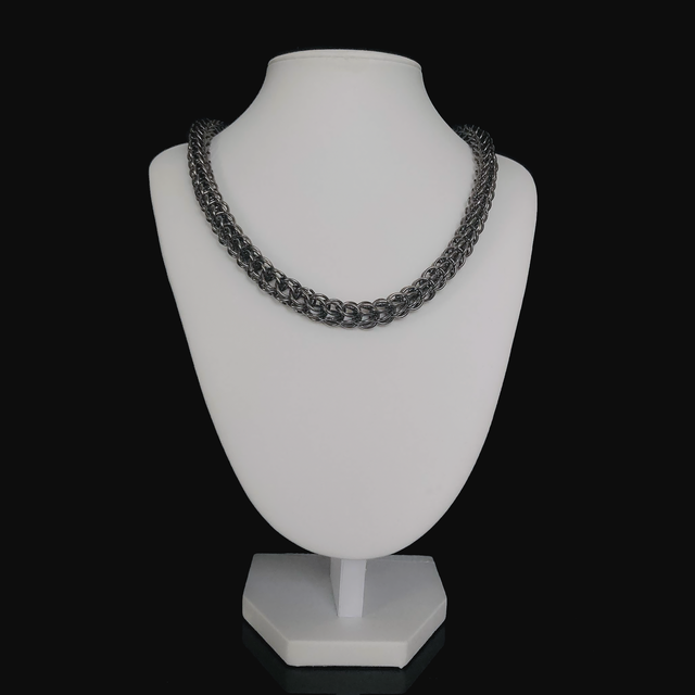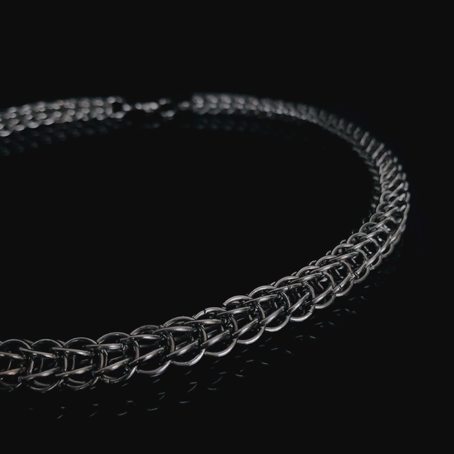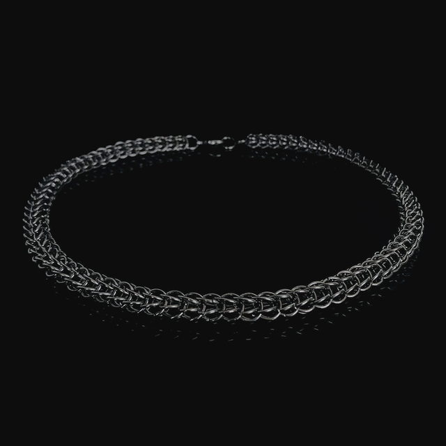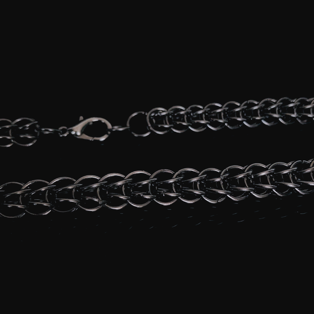 Metalowy Łańcuch Full Persian 6 in 1 | Elven Rope Chainmaille to imponujący dodatek dla miłośników wyjątkowej biżuterii. Kolor ciemnego srebra nadaje mu surowego, ale eleganckiego wyglądu, który doskonale komponuje się zarówno z codziennymi stylizacjami, jak i bardziej wyrazistymi, gotyckimi czy fantasy-inspired outfitami. Jego masywny design i kunsztowne wykonanie przyciągają uwagę, podkreślając unikalny styl.