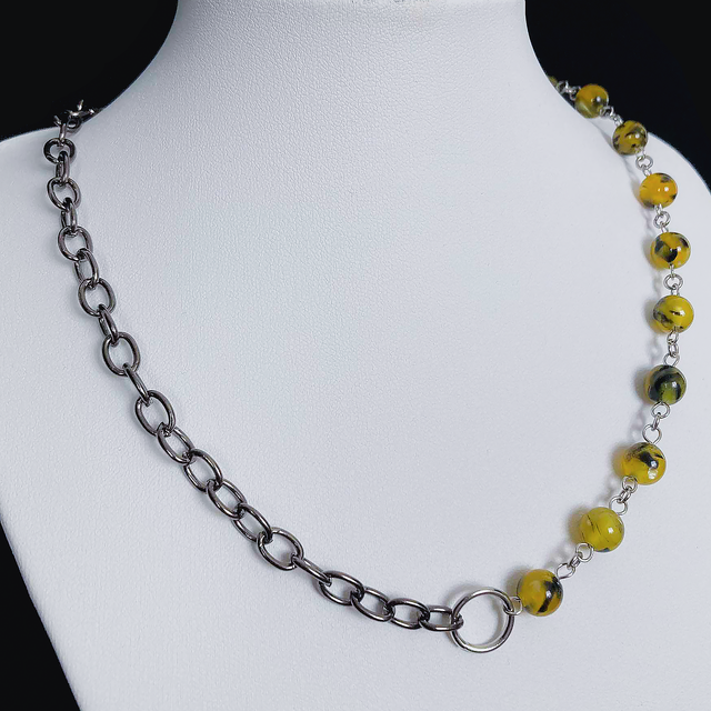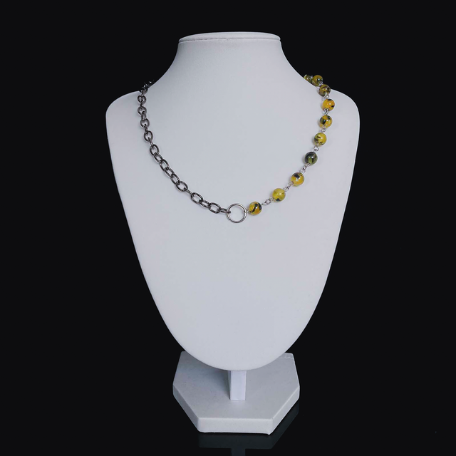 Nowoczesny i wyrazisty naszyjnik dla osób, które lubią oryginalne dodatki. Antracytowy, antyalergiczny łańcuch w połączeniu z koralikami z żywicy tworzy niebanalną biżuterię, która podkreśli każdą stylizację – od codziennej po wieczorową.
